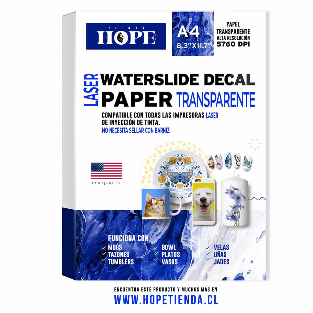 Papel A4 transparente decal waterslide 5 hojas Inyección de Tinta