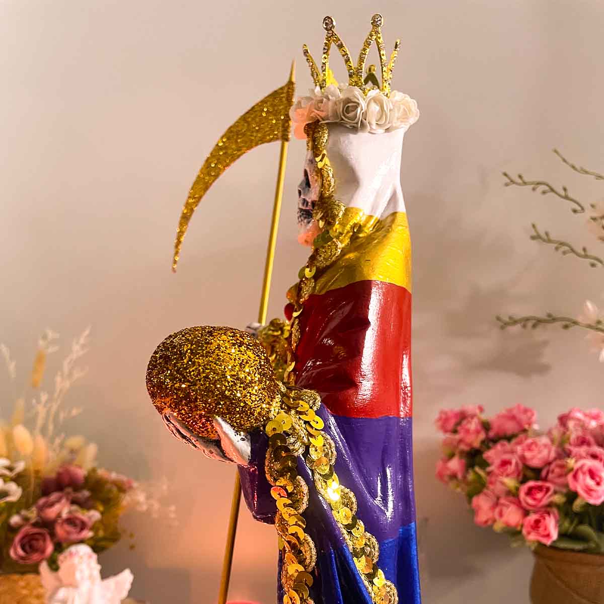 Esta Santa Muerte de los 7 Colores te recuerda que no existe una energía buena o mala, sino la intención con la que se invoca. Ella refleja lo que hay en tu corazón, y si tu camino es sincero, su guía será tu mayor aliada.